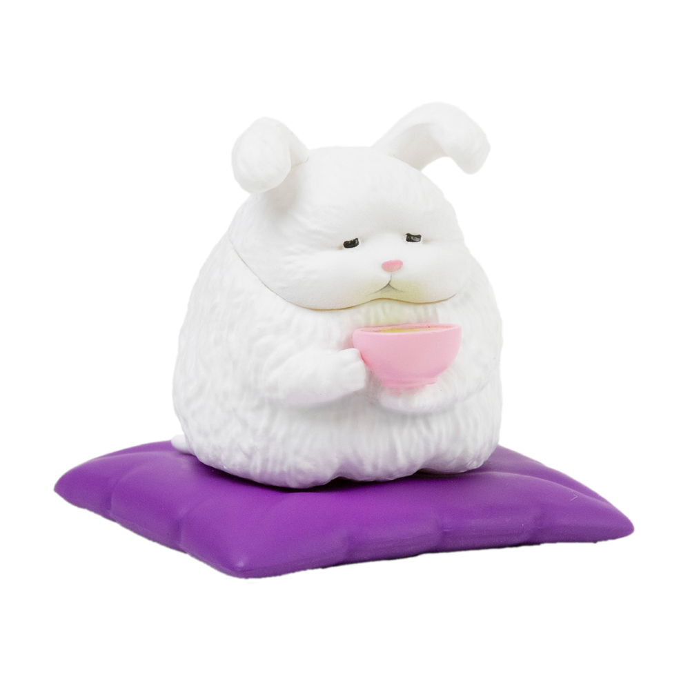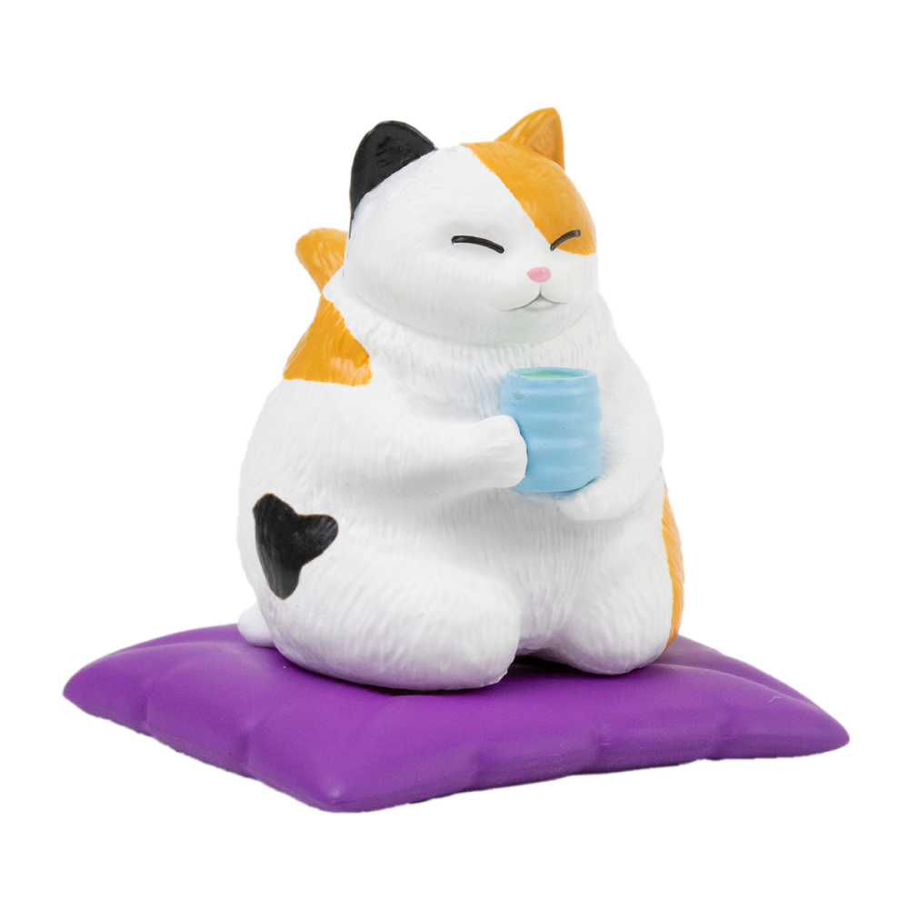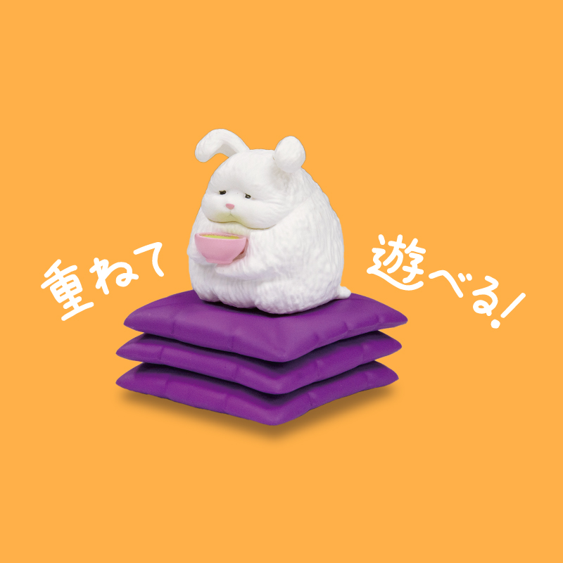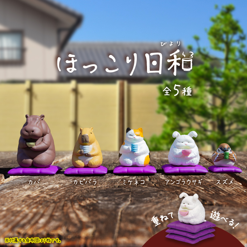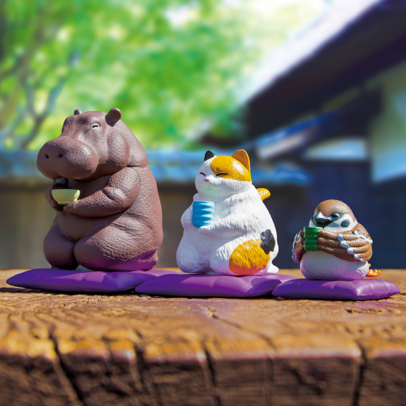 動物たちがお茶をすすりながら座布団に座っているほっこりするフィギュアです。