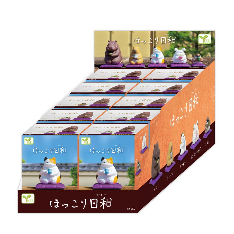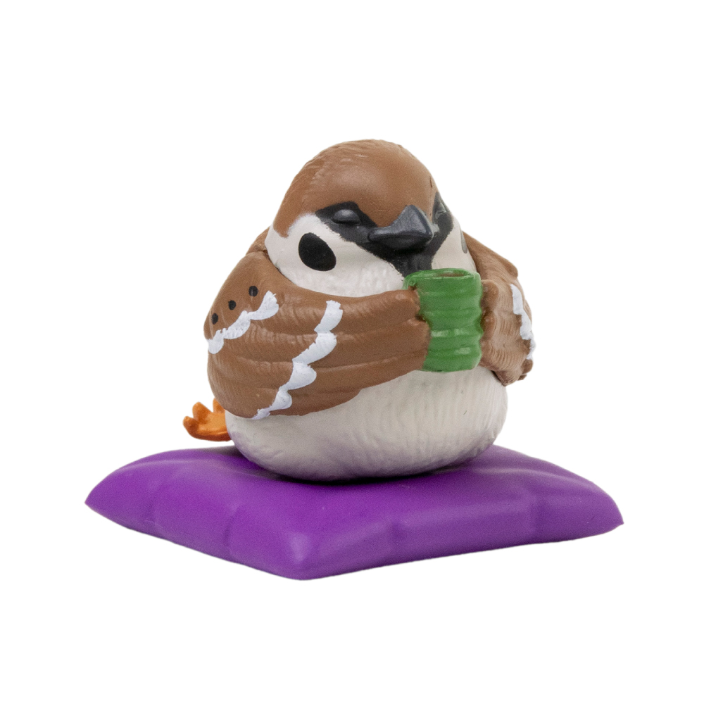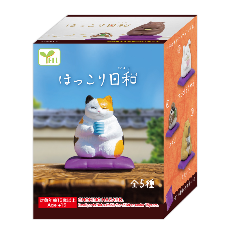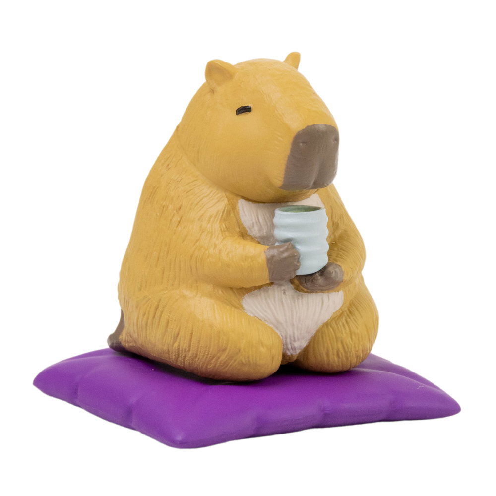 動物たちがお茶をすすりながら座布団に座っているほっこりするフィギュアです。