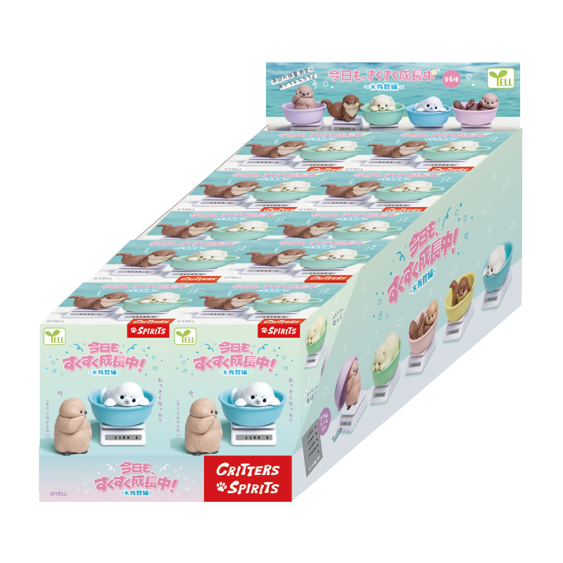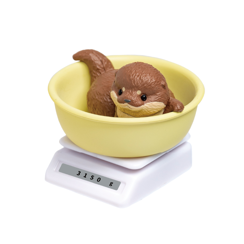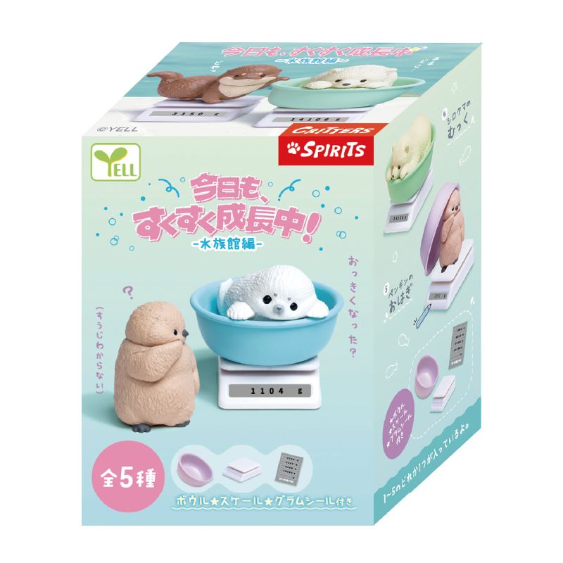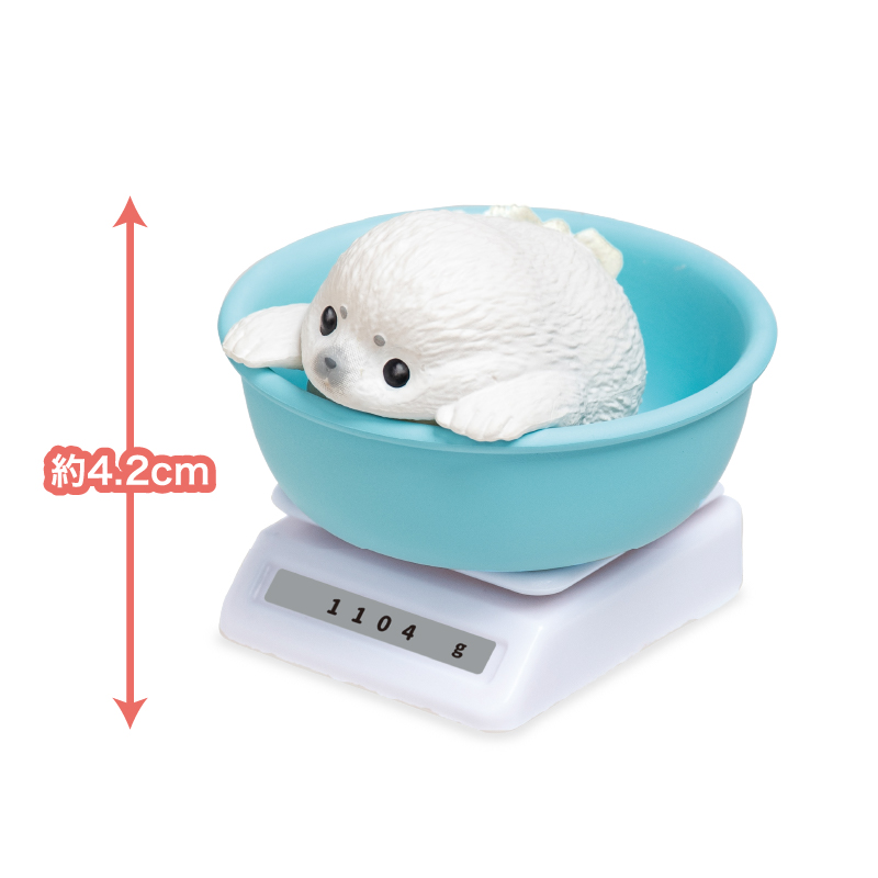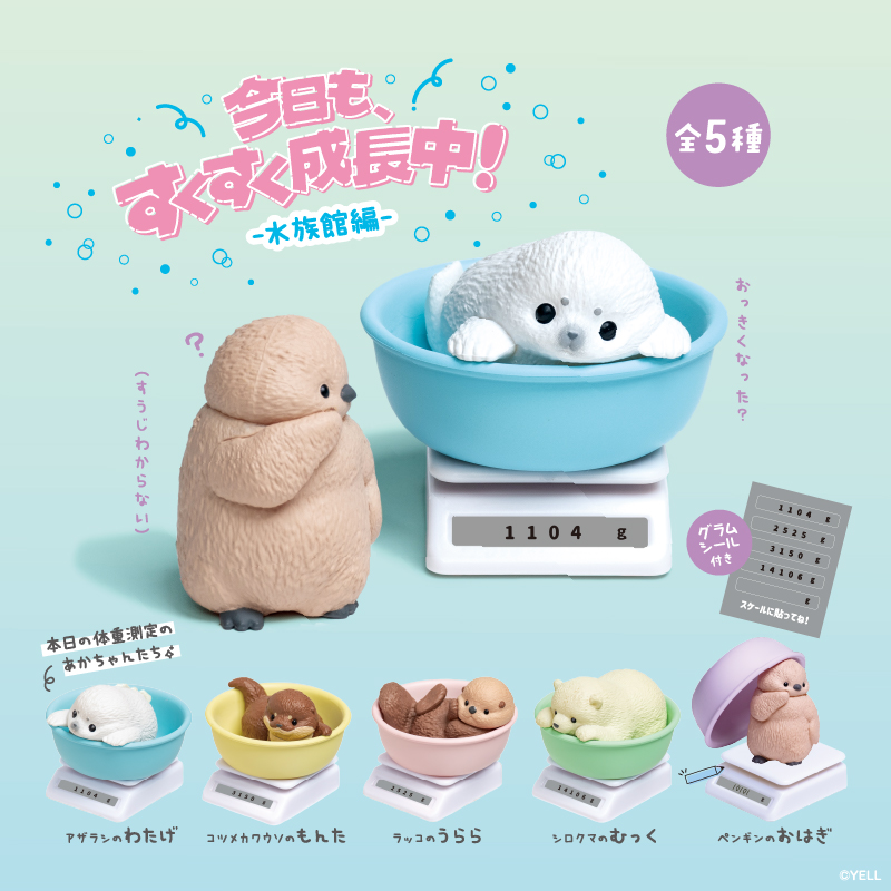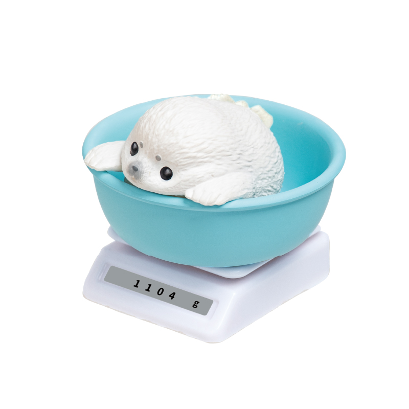 今日も、すくすく成長中-水族館編- 体重測定をしている水族館の赤ちゃんたちのフィギュアだよ! バリエーション アザラシのわたげ コツメカワウソのもんた ラッコのうらら シロクマのむっく ペンギンのおはぎ